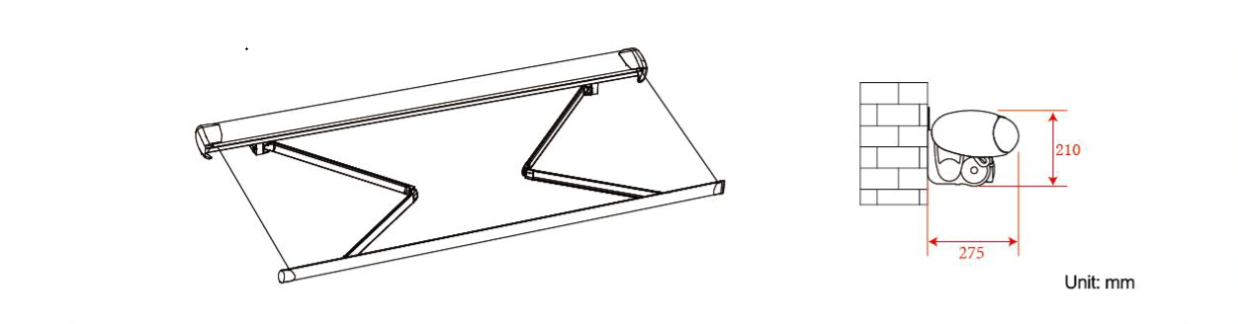 The rear cover can rotate up and down. When the awning is extended and retracted, it can adjust up and down automatically. When retracted, it can close with the front rod accurately